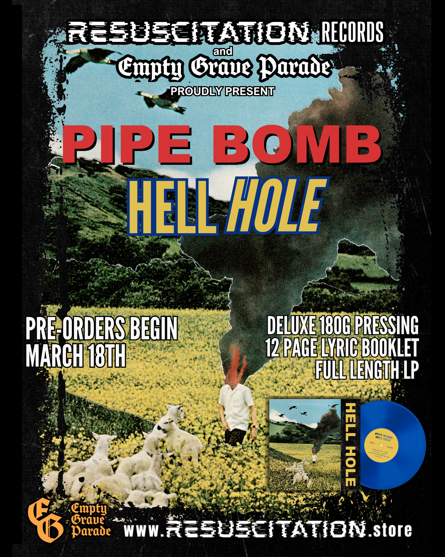 Resuscitation Records is proud to announce that Release No. 9 will be “Hell Hole,” the new full length LP from Pipe Bomb. This record is being released in partnership with Empty Grave Parade.